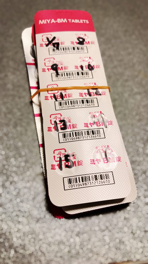 薬のシートの裏に日付を書いておくと、飲み忘れ防止になります。あさ、ひる、よる、などもOKです。自分のわかりやすいようなマークでもいいと思います。